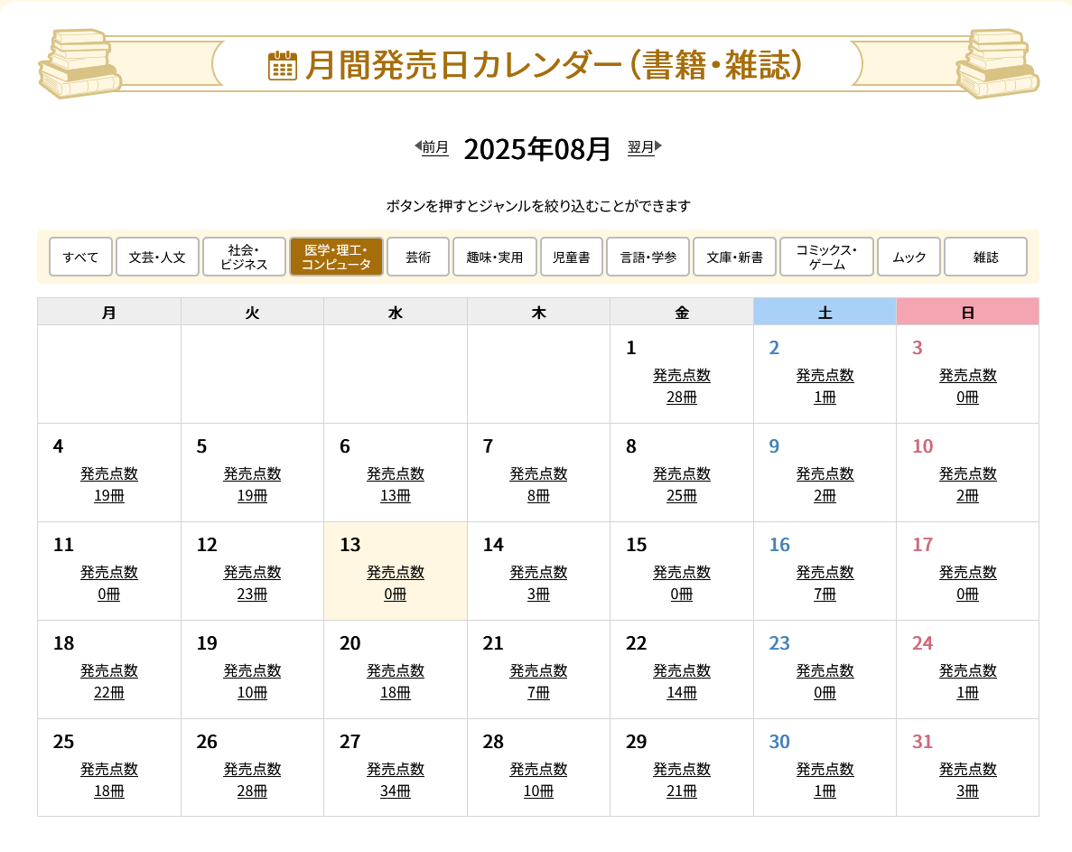 カテゴリ別に新しい本が見られるのでたまに見ると面白いと思う。